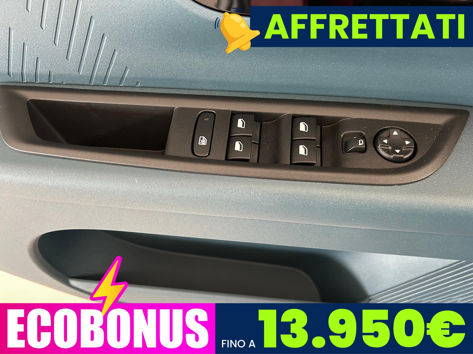 Offerta valida con finanziamento Stellantis Financial Services, ritiro permuta/rottamazione , incentivo statale e immatricolazione entro il mese corrente, escluse spese, kit di preparazione, IPT e contributo ambientale PFU.