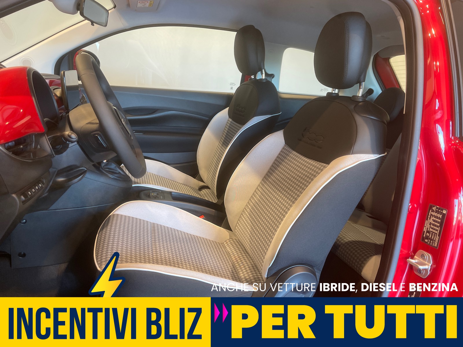 Tessuto pied-de-poule nero e grigio con ricamo "500 fiat"