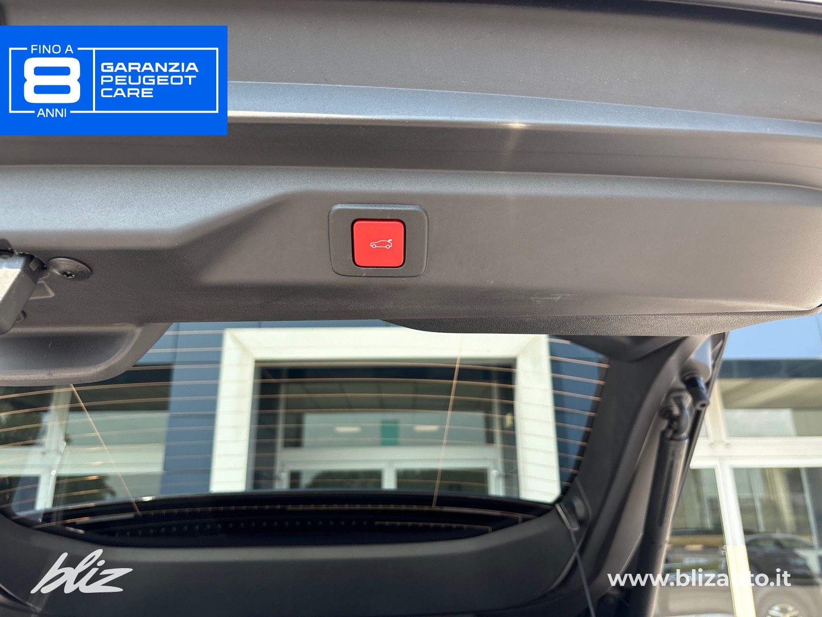 fascia nera lucida tra i fari posteriori con scritta "peugeot"